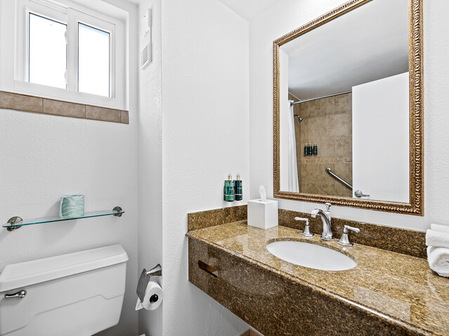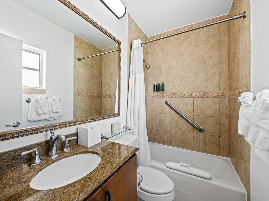 These rooms are our most basic room but do include all of your favorite amenities and are mobility/hearing accessible with lowered vanity and commode, and are equipped with grab bars in the tub/shower. These rooms are located in the resort's main tower and are accessible by our elevator. Please note these rooms do not have a balcony or ocean view. Both of our pools are equipped with an ADA pool lift which provides access to either one of our two pools.
