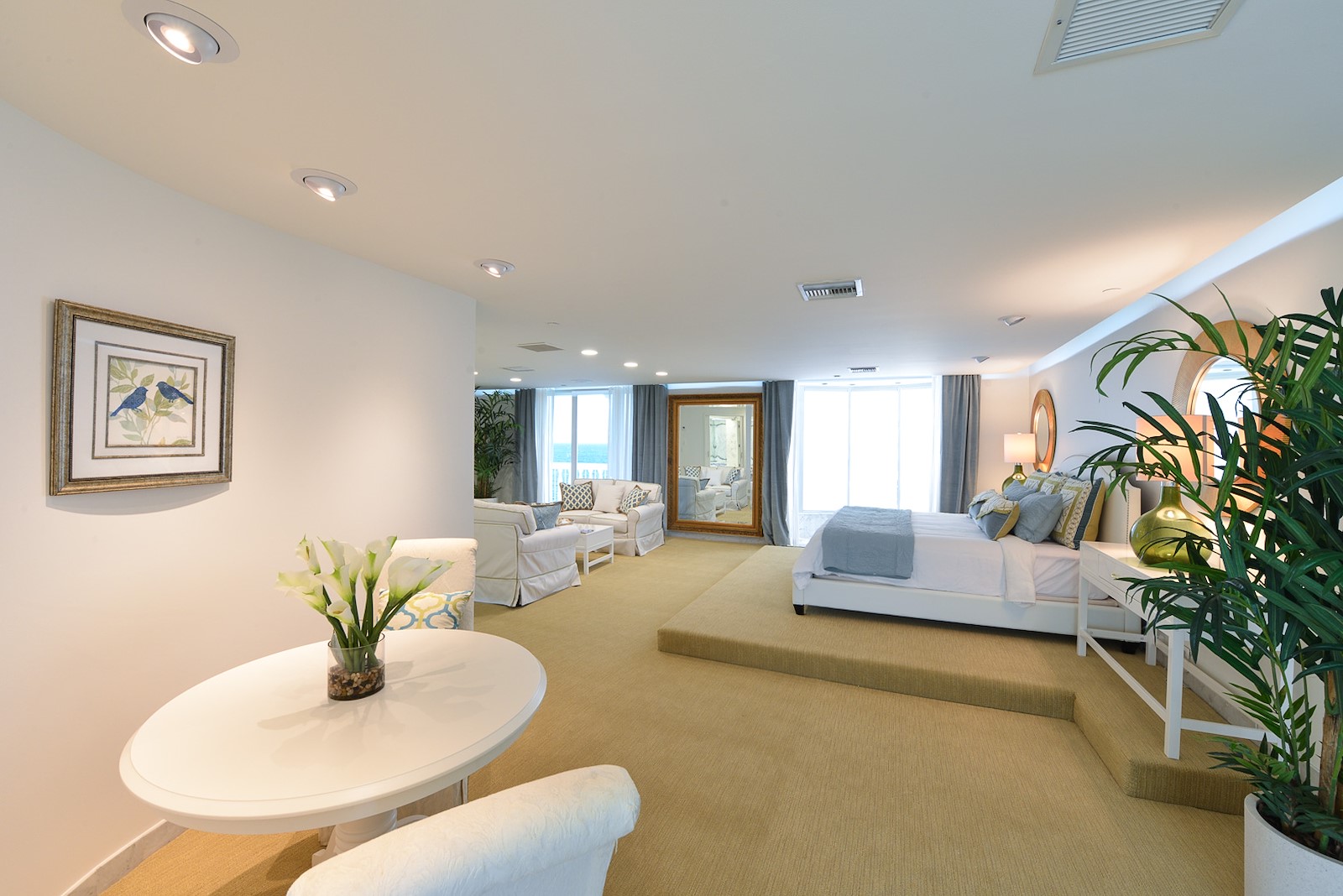 Immerse yourself in total luxury when you take over the entire 9th floor of Beachcomber Resort & Club. Our Pompano Beach penthouse suite affords our guests 360 views of the city and the lovely beach where the hotel stands.